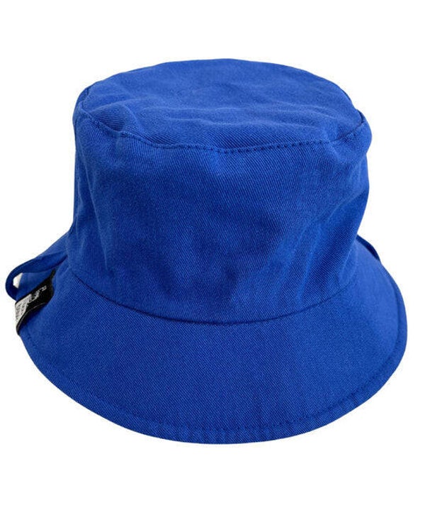 Jolie chapeau avec des bleuets qui est réversible et devient tout bleue. Avec cordon à l'intérieur, convient aux bébés et aux jeunes enfants.